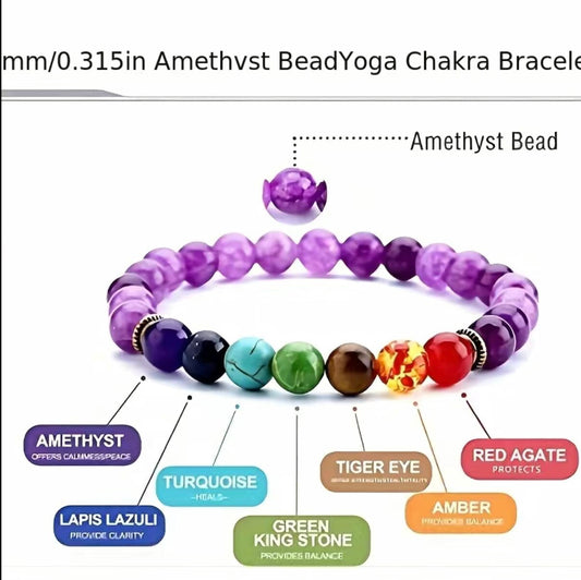 7 Chakra Colorful Beaded Bracelet for Inner Peace, Reiki, and Yoga